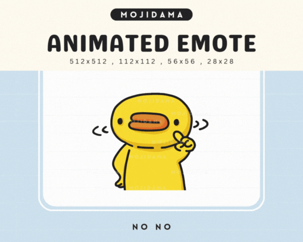 Waddle into fun with Duck Emotes Animated Twitch Stream No Nope Animation, featuring cute chibi duck emotes that deliver the perfect kawaii “nope” reaction with charm and humor. Ideal for VTubers, streamers, and live content on Twitch, Kick, YouTube, or Discord, these animated duck emotes add quirky personality and expressiveness to your stream.