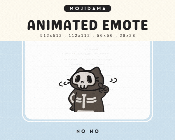 The Skull Cat Ghost π»ππ± brings a spooky βNO!β with creepy charm, a funny animated emote for Halloween streams, gaming rejections, or community laughs.